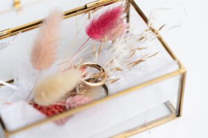 Beim Getting-Ready bereiten sich die Braut und der Bräutigam auf den großen Tag vor. Neben dem Brautpaar können bereits kleine Details, wie die Ringe, das Kleid oder anderes aufgenommen werden.