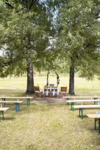 Der Abschluss und größte Part ist wohl die Party und die Feier. Dort wo ausgelassen gefeiert wird, ohne zeremonielle Punkte. Und meist der Platz, wo der Hochzeitstanz Platz findet.